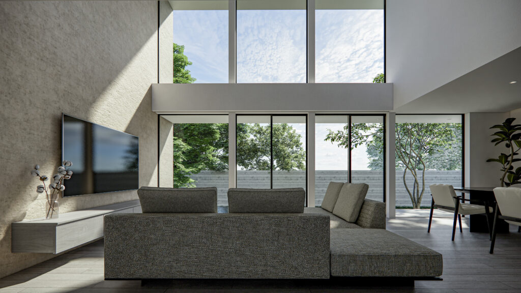 大開口×吹き抜けで、景色を取り込む家