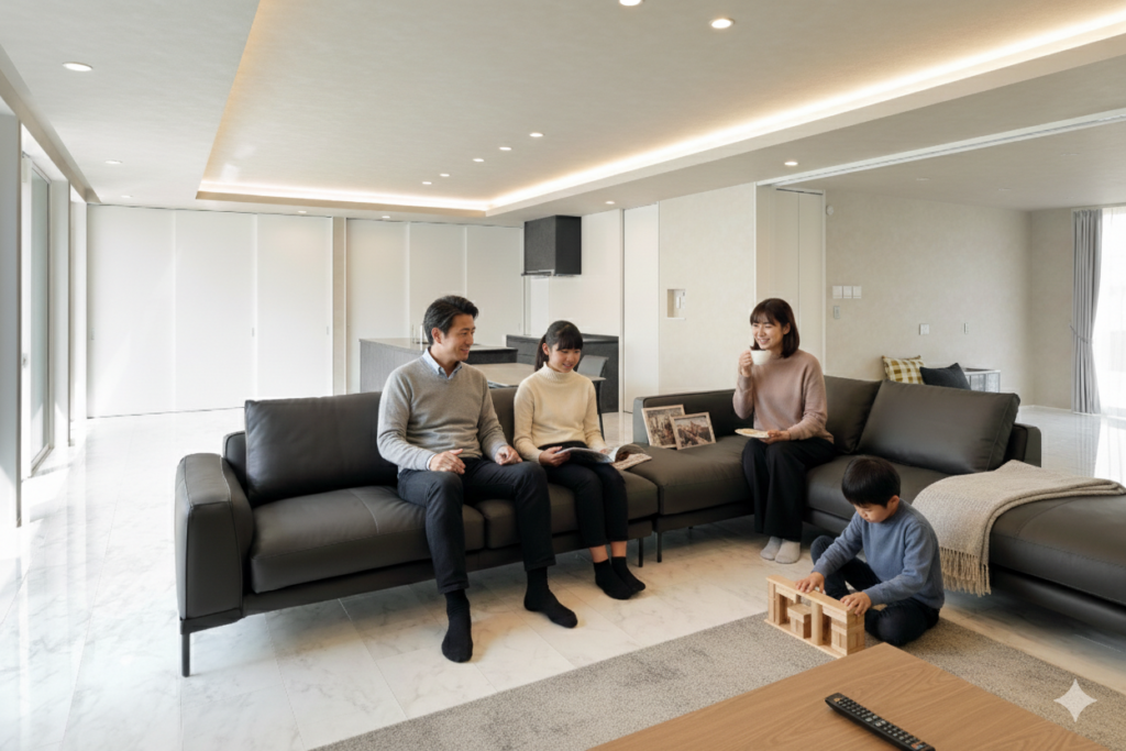 柱のないLDKで、家族が集まる空間に