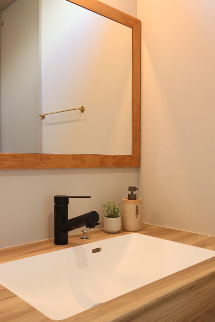 洗面は個性を出しやすい場所ですが、家全体のテイストと揃えることが大切です。
